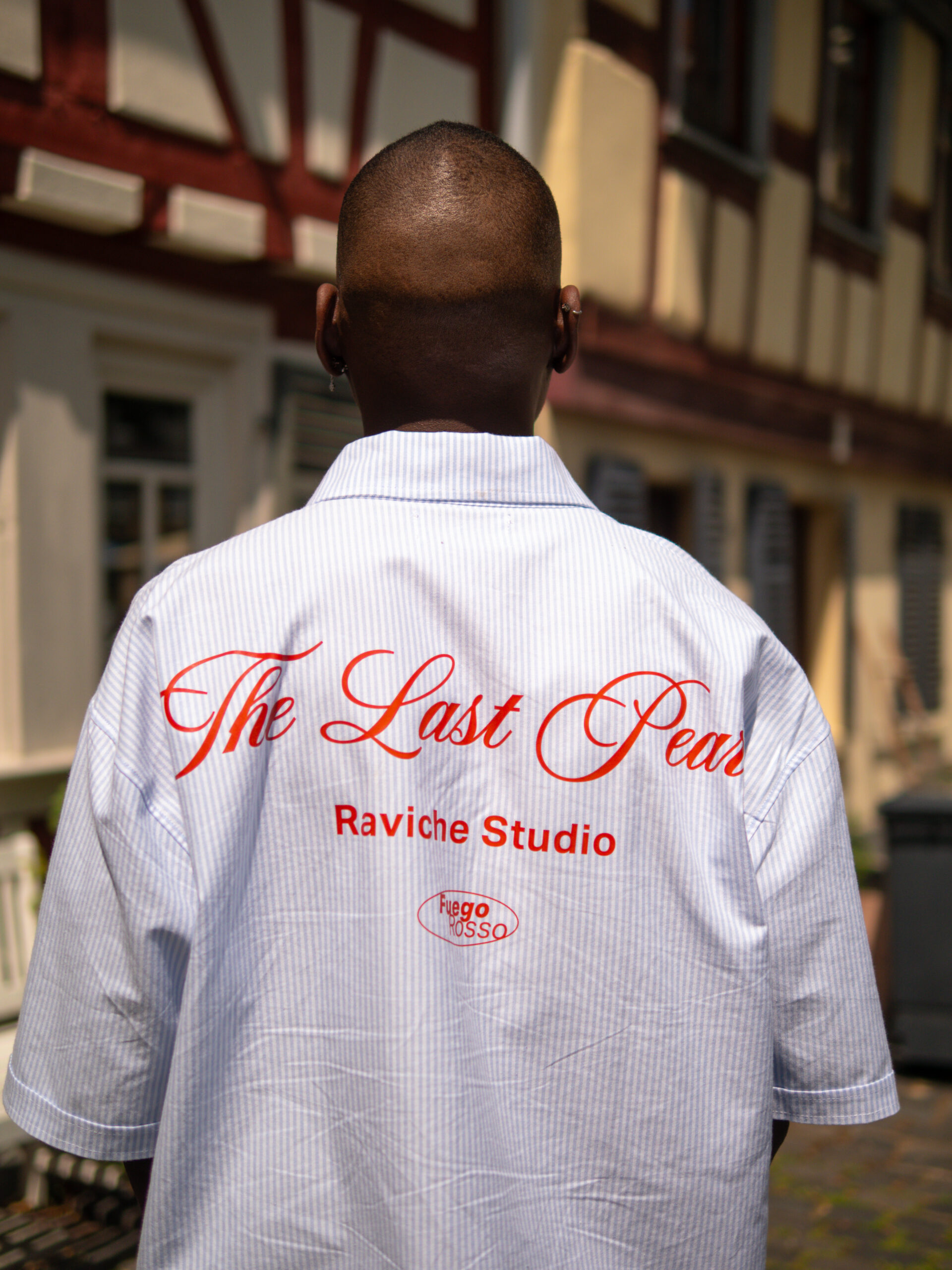 A hand-written “The Last Pearl” print sits below the Raviche Studio insignia and Fuego Rosso drop logo, adding unique character and personality.